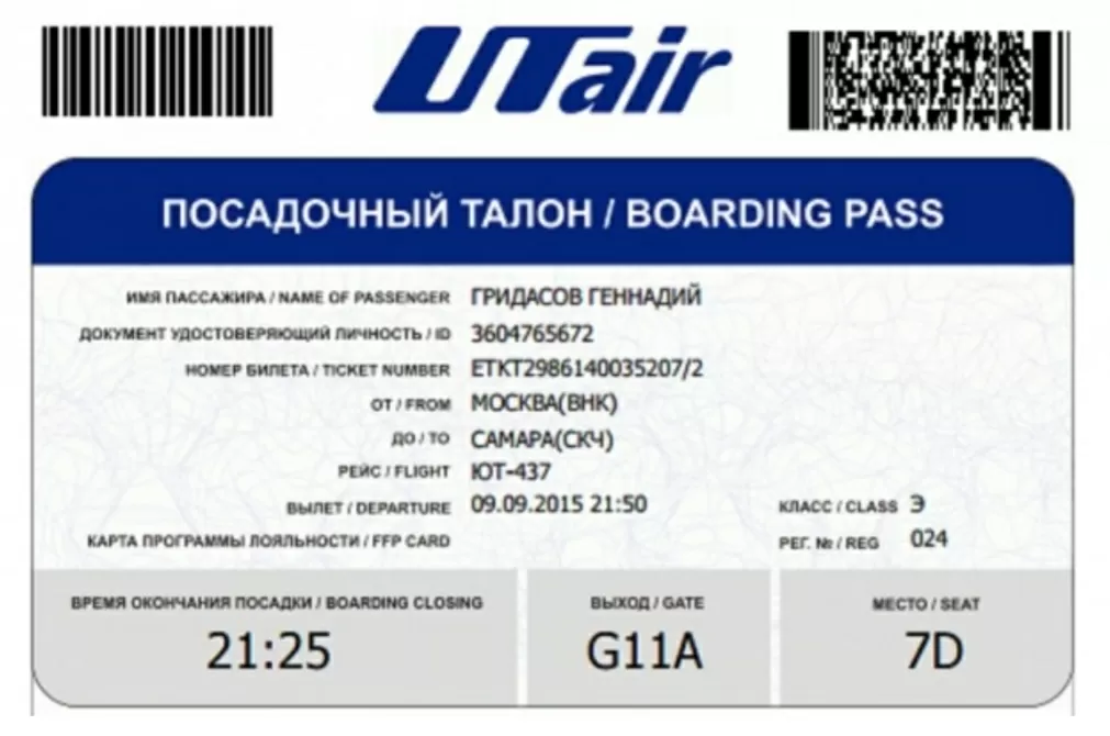 2D штрих-код – это набор вертикальных черно-белых полос разной ширины (фото 2). Посадочный талон в электронном виде с таким кодом нужно обязательно распечатать перед вылетом! Автоматизированная система контроля не сканирует штрих-код вместо QR кода.